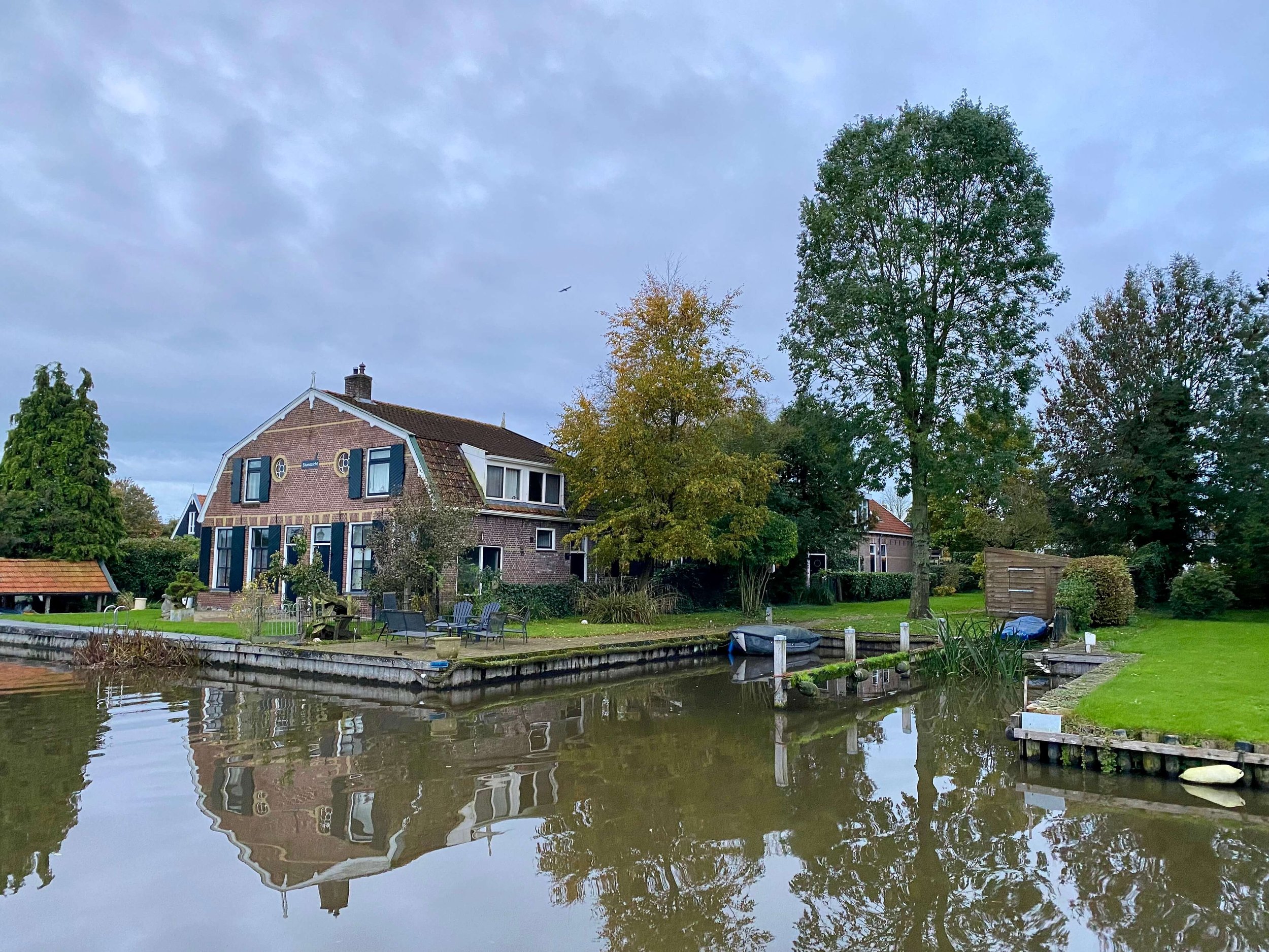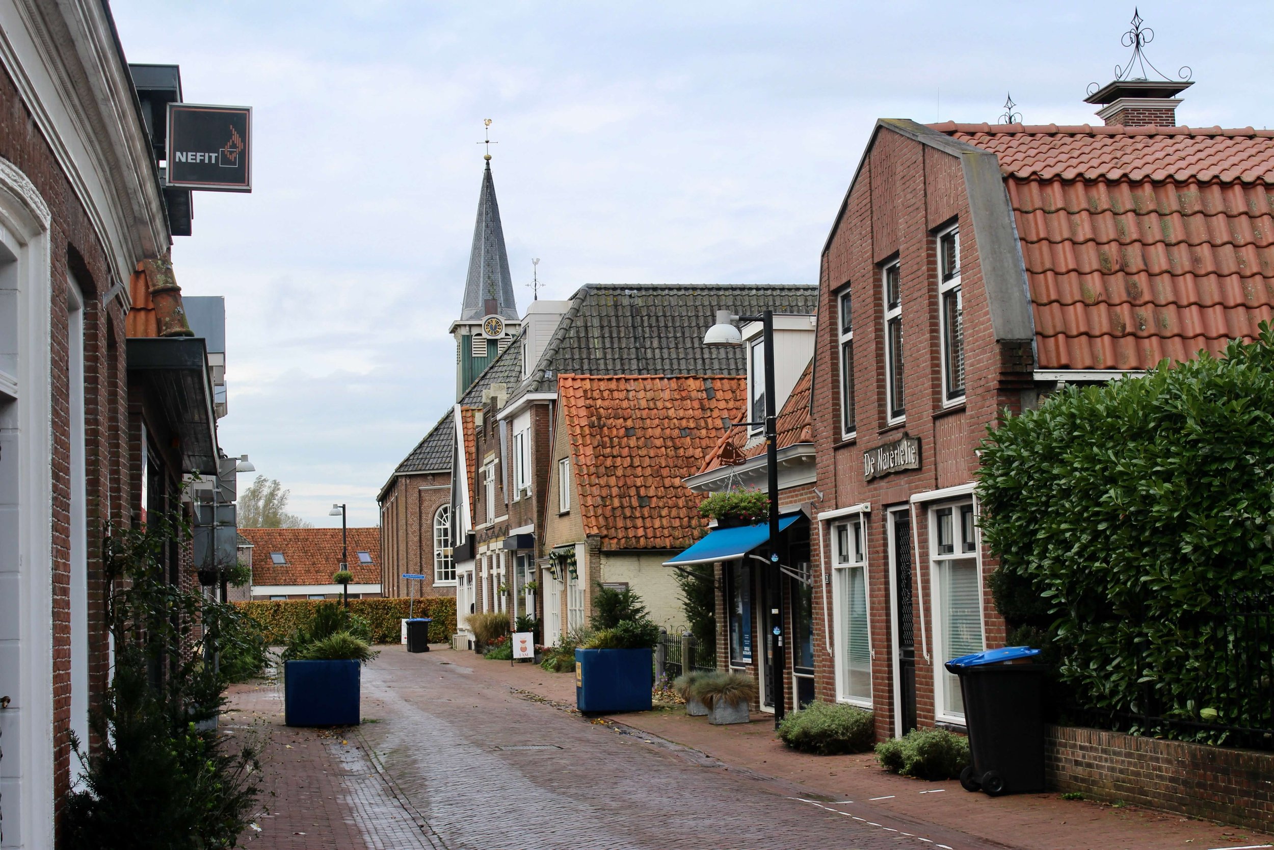 Na Sneek toeren we in de namiddag verder naar een tweede Elfstedenstad: IJlst. We hebben nog net genoeg tijd en licht voor een korte avondwandeling door deze prachtige stad die gekenmerkt wordt door zogenaamde overtuinen. Dat zijn voortuinen tussen de straat en de vaart. IJlst is wat mij betreft dé verrassing van deze trip. Klein, maar zo’n knus stadje. Een paar stille straten, allemaal kleine gezellige huisjes naast elkaar, wat water dat ertussen stroomt en een oergezellig bruine kroeg. Het is hier, in Het Wapen van IJlst, dat we ‘s avonds genieten van een rodebietenburger, frietjes en frimisu (tiramisu met een Friese toets). Super lekker, super gezellig.